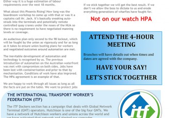 The third operator in the ports of Botany and Brisbane, Hong-Kong based Hutchison, has embarked on a union-busting campaign. The MUA will keep all members updated on developments.