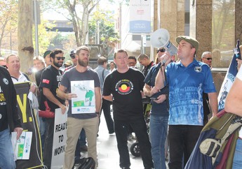 More than 100 MUA members and supporters gathered outside of the Sydney’s Marriott to protest the Government’s announcement to unravel coastal shipping.