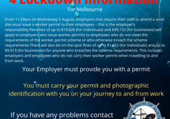 Comrades, Due to Stage 4 restrictions on businesses in Melbourne, the Victoria branch office will be working remotely commencing Thursday 6th August 2020.