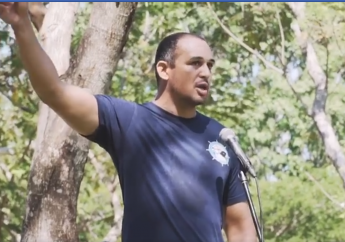 Photo: MUA Indigenous Officer Thomas Mayor at the #BlackLivesMatter rally in Darwin