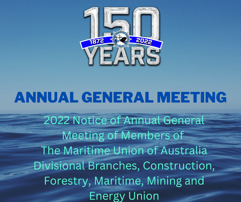 Click here for PDF 2022 Notice of Annual General Meeting of Members of The Maritime Union of Australia Divisional Branches, Construction, Forestry, Maritime, Mining and Energy Union