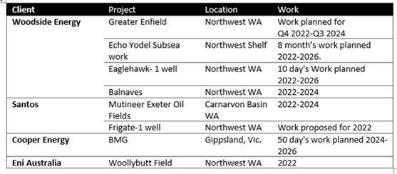 Bigger projects will be complete in stages, and work will increase as these are approved by NOPSEMA.