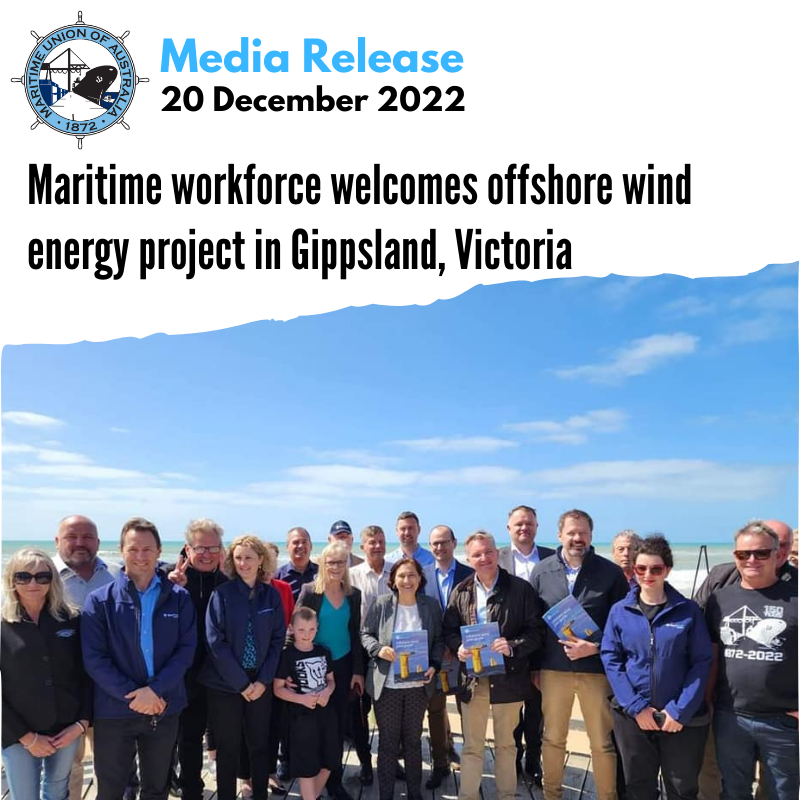 Victorian maritime workers have welcomed the announcement yesterday by the Federal Labor Government of a renewable energy zone in the Bass Strait off the Gippsland region of Victoria that will deliver hundreds of new seafaring and port services jobs while future proofing Australia’s energy needs with clean, renewable wind power.