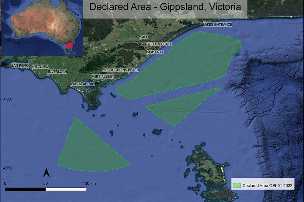 The declared area off Gippsland covers approximately 15,000 square kilometres and runs from offshore of Lakes Entrance in the east, to south of Wilsons Promontory in the west. Estimates show offshore wind projects off Gippsland could support more than 3,000 jobs over the next 15 years during their development and construction phases, and an additional 3,000 ongoing operational jobs. The wind turbine installations will all be a minimum of 10 kilometres offshore.