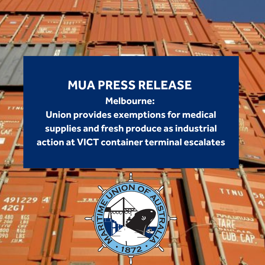 The Maritime Union of Australia has written to VICT outlining a proposal to ensure any containers that contain medicines, medical supplies, or urgent medical equipment are exempt from the industrial action.