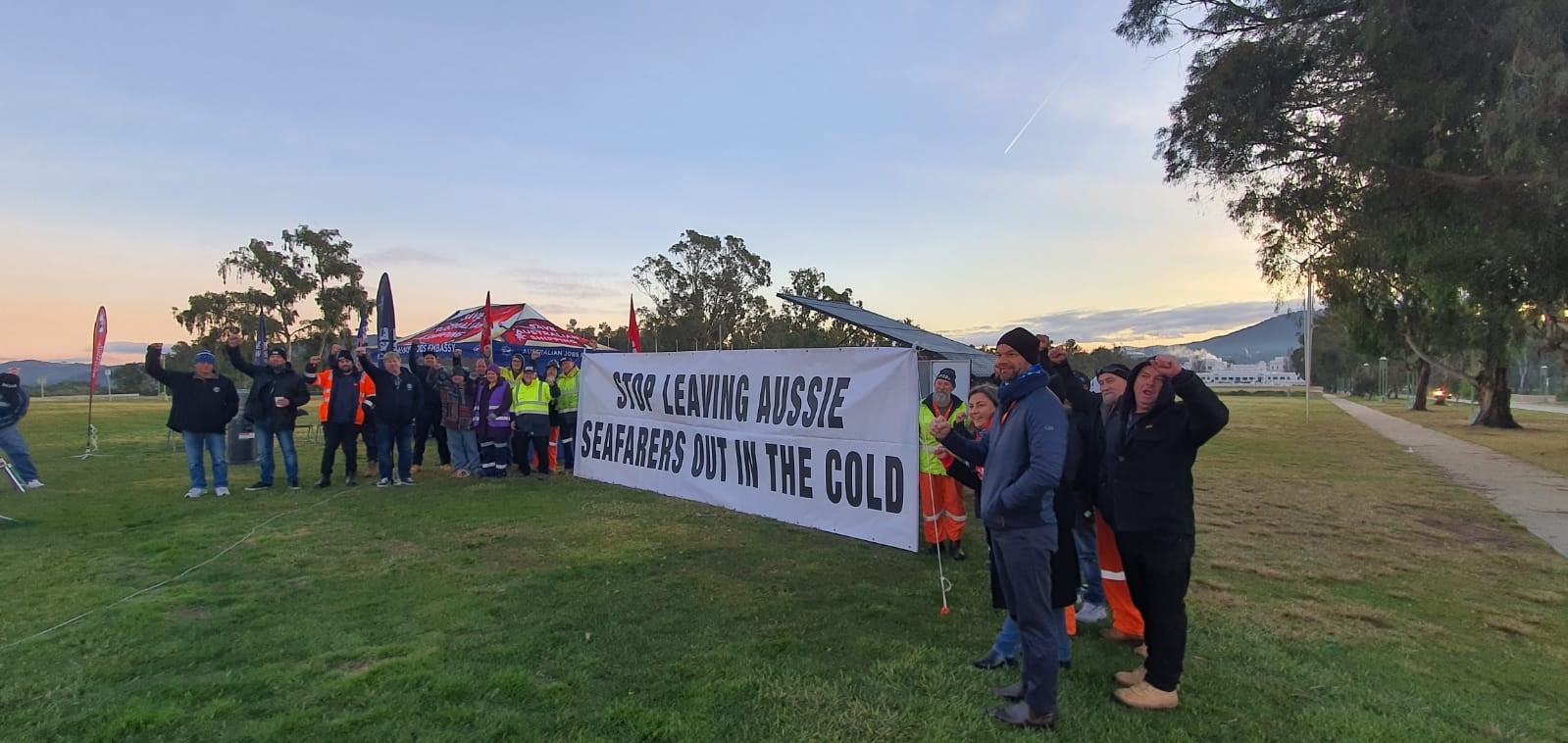 Seafarers who have lost their jobs after Australian vessels were replaced by foreign ships — many registered in notorious tax havens — were joined in their protest on the lawns of Parliament House by fellow maritime workers, trade unionists, and members of parliament.