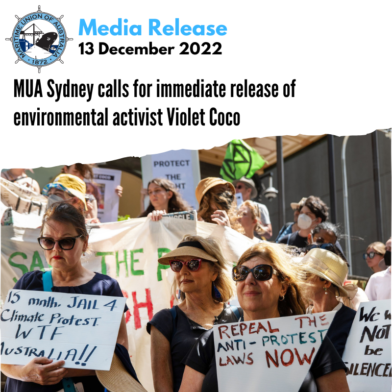The Maritime Union of Australia Sydney Branch unequivocally condemns the imprisonment of environmental activist Violet Coco and demands her immediate release.