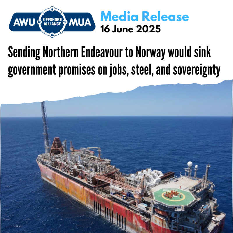 The Maritime Union of Australia (MUA) and the Australian Workers’ Union (AWU) are calling on the Minister for Resources, Madeleine King MP, to ensure that responsibility for the dismantling of the Northern Endeavour is not offloaded to Norway, a move that would be in direct contradiction to the government’s policy commitments to build a sovereign decommissioning and green metals industry under the “Future Made in Australia” agenda.