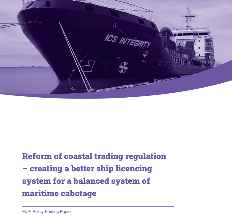 Reform of the Coastal Trading Regulation – Creating a Better Ship Licencing System for a Balanced System of Maritime Cabotage - Read this MUA Policy Document HERE