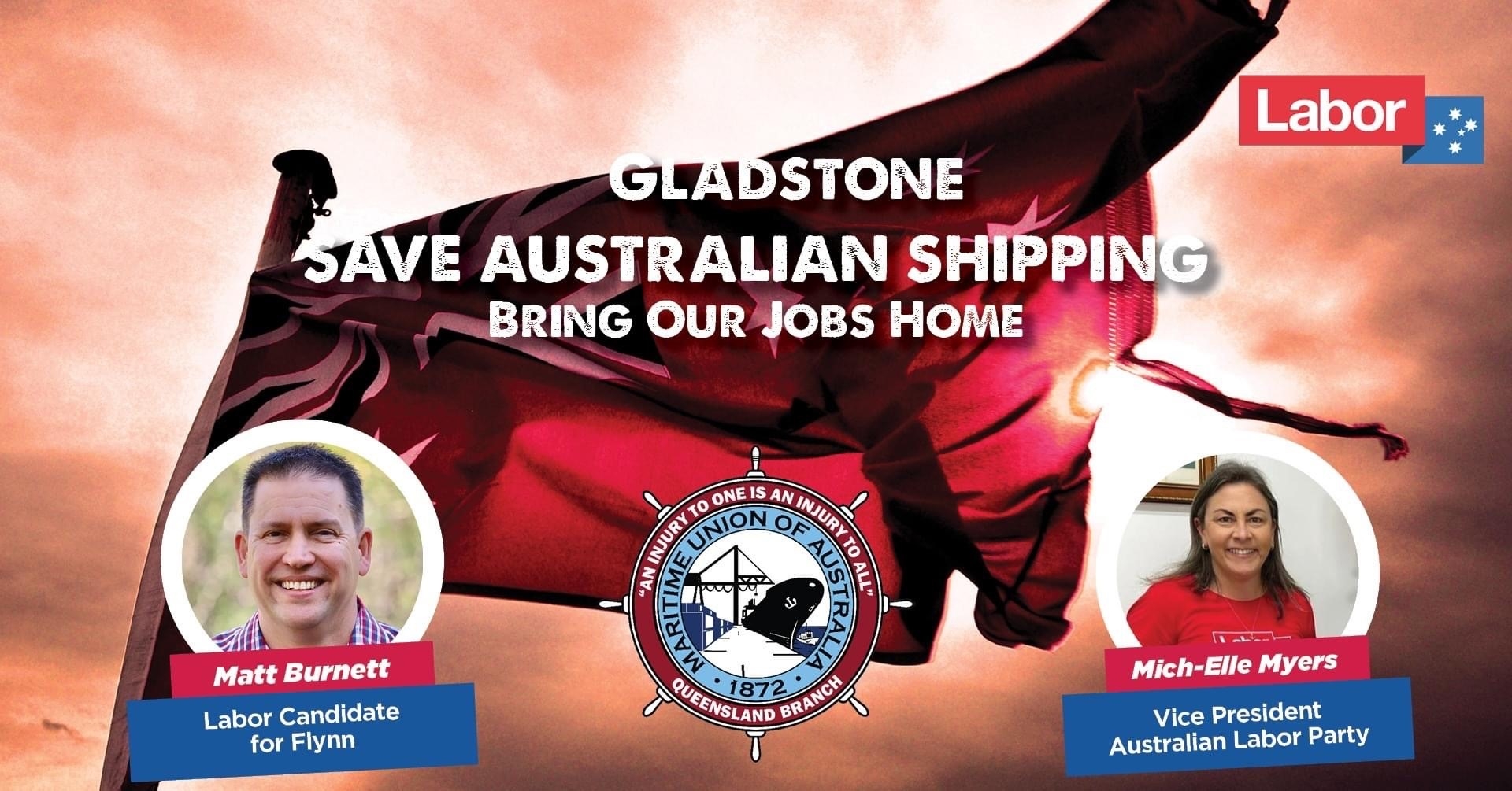 Come along to learn the heartbreaking story of a crew and an industry abandoned by the Australian Government and marched off their ship. Hosted by the Maritime Union of Australia Queensland Branch with special guests, Matt Burnett, Labor's Candidate for Flynn, and Mich-Elle Myers, Vice President of the Australian Labor Party. DATE Tuesday 26th April 2022 6:00 PM - 8:00 PM LOCATION Gladstone Cinemas 71-77 Dawson Rd, West Gladstone QLD 4680 Click here to book your free tickets: http://mua.org.au/save-shipping-gladstone Facebook event URL: https://fb.me/e/4mFBUvX2A