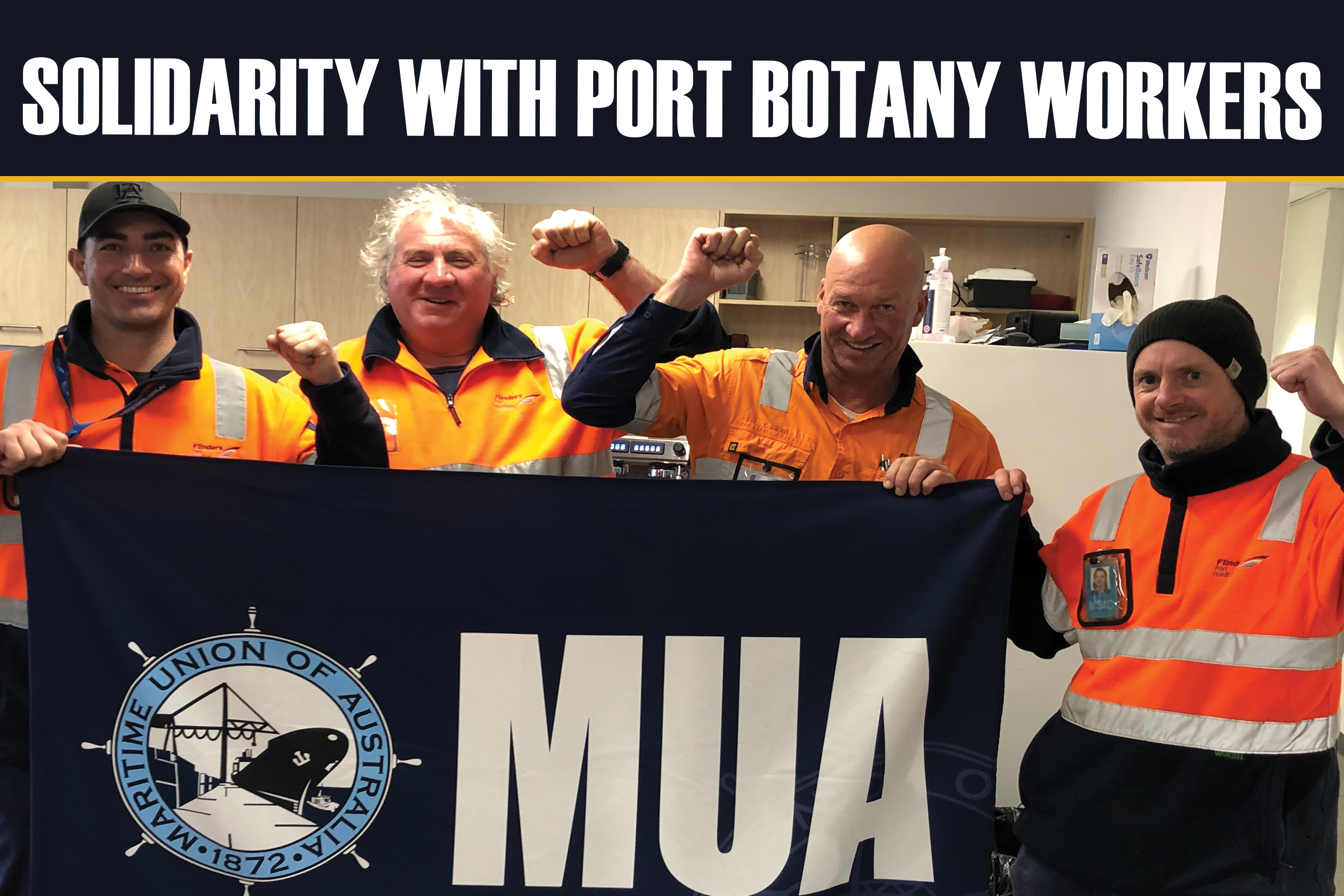 Branch members at Flinders Ports mooring gang were proud to lend their solidarity to the MUA Sydney Branch campaign to stamp out non union operators in the mooring industry in Port Botany. A company with a Union Agreement shut down using COVID19 as an excuse, leaving a dozen MUA members unemployed. Almost the next 2 directors of that company started another lines company and bid for work substantially lower than established competitors and with a non union agreement and scab labour. The Sydney Branch led a militant campaign including picket lines, boats in the water and marching on Caltex the operator who engaged the scab outfit. The short but intense campaign, including a heavy police presence was successful. The Scab company contract was cancelled. The power of the union is in the collective and wharf services are easily contracted out. It is on that basis that vigilance and militancy in this space continues to protect Union jobs, pay and conditions.