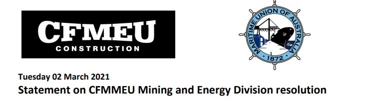 The Construction and General Division and Maritime Divisions of the Union note the resolution of the Mining and Energy Delegates convention with disappointment.
