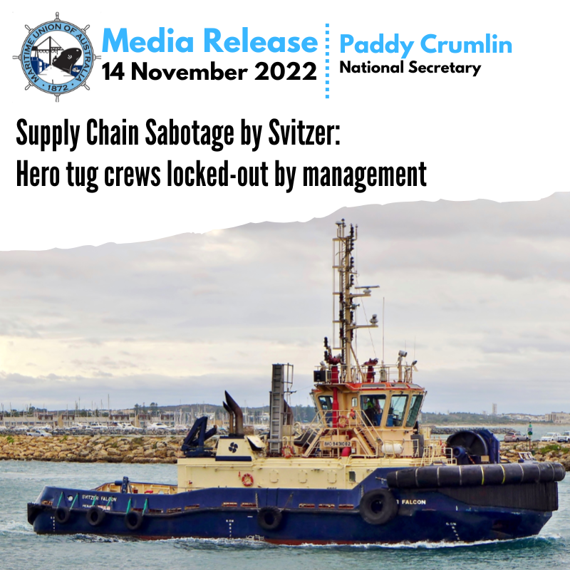 In a massive escalation of the simmering industrial conflict being waged by Svitzer Towage’s Australian management against local tugboat crew, the company has given notice that it will lock-out its entire national seagoing workforce on Friday 18 November, effectively destroying its capacity to deliver towage services and throwing Australian supply chains into disarray.