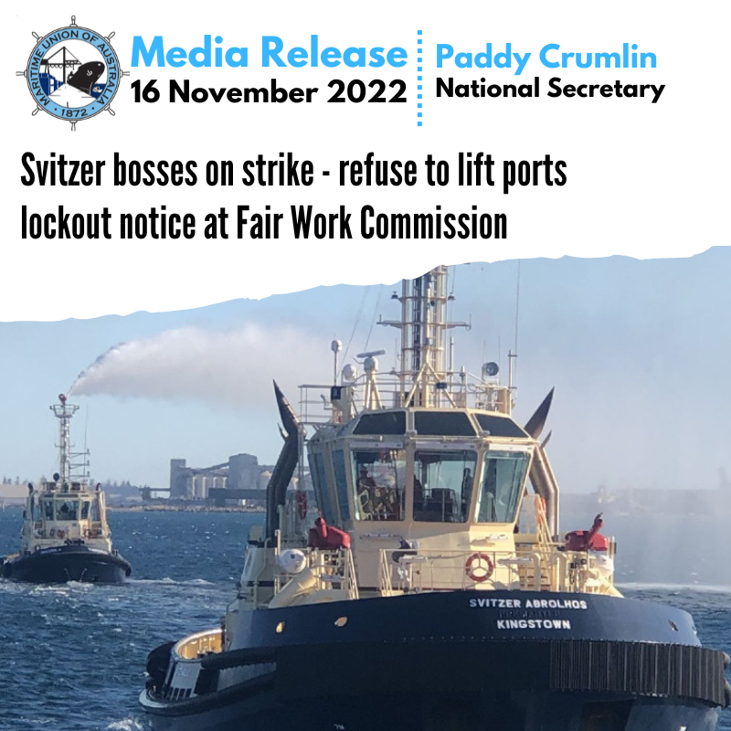 SVITZER BOSSES ON STRIKE – REFUSE TO LIFT PORTS LOCKOUT NOTICE AT FAIR WORK COMMISSION