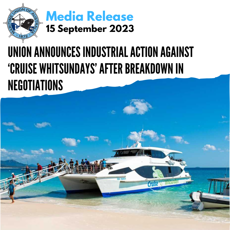 UNION ANNOUNCES INDUSTRIAL ACTION AGAINST ‘CRUISE WHITSUNDAYS’ AFTER BREAKDOWN IN NEGOTIATIONS