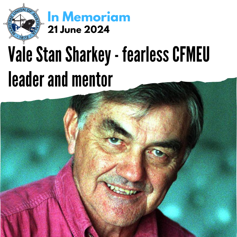 The Maritime Union of Australia is saddened to hear of the passing of CFMEU leader and mentor, Stan Sharkey.